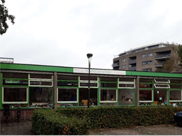Een voorbeeld van een gedateerd schoolgebouw dat in korte tijd is getransformeerd tot een moderne energie neutrale school is De Vuurvogel, Figuur 2 en 3. Deze circulaire renovatiestrategie resulteerde in een inclusief onderwijsprogramma, slim energiegebruik, modulair bouwen en een geclusterde aanbesteding voor de locatie.