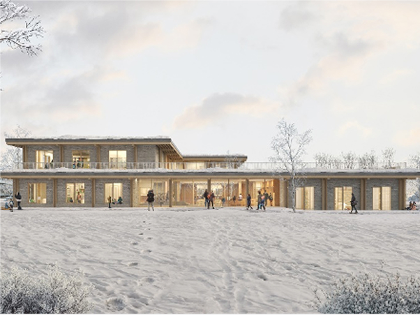 Een voorbeeld van circulaire nieuwbouw is de Montessori school in Maassluis, Figuur 6 en 7. In een dichte stedenbouwkundige context zal de wederopbouw voor de Montessorischool worden ontwikkeld zoveel mogelijk volgens de principes van de circulaire economie met adaptieve en omkeerbare structuren, natuurlijke en hergebruikte materialen, energiepositief, en doordachte prefabricatie en re-montabel bouwen.